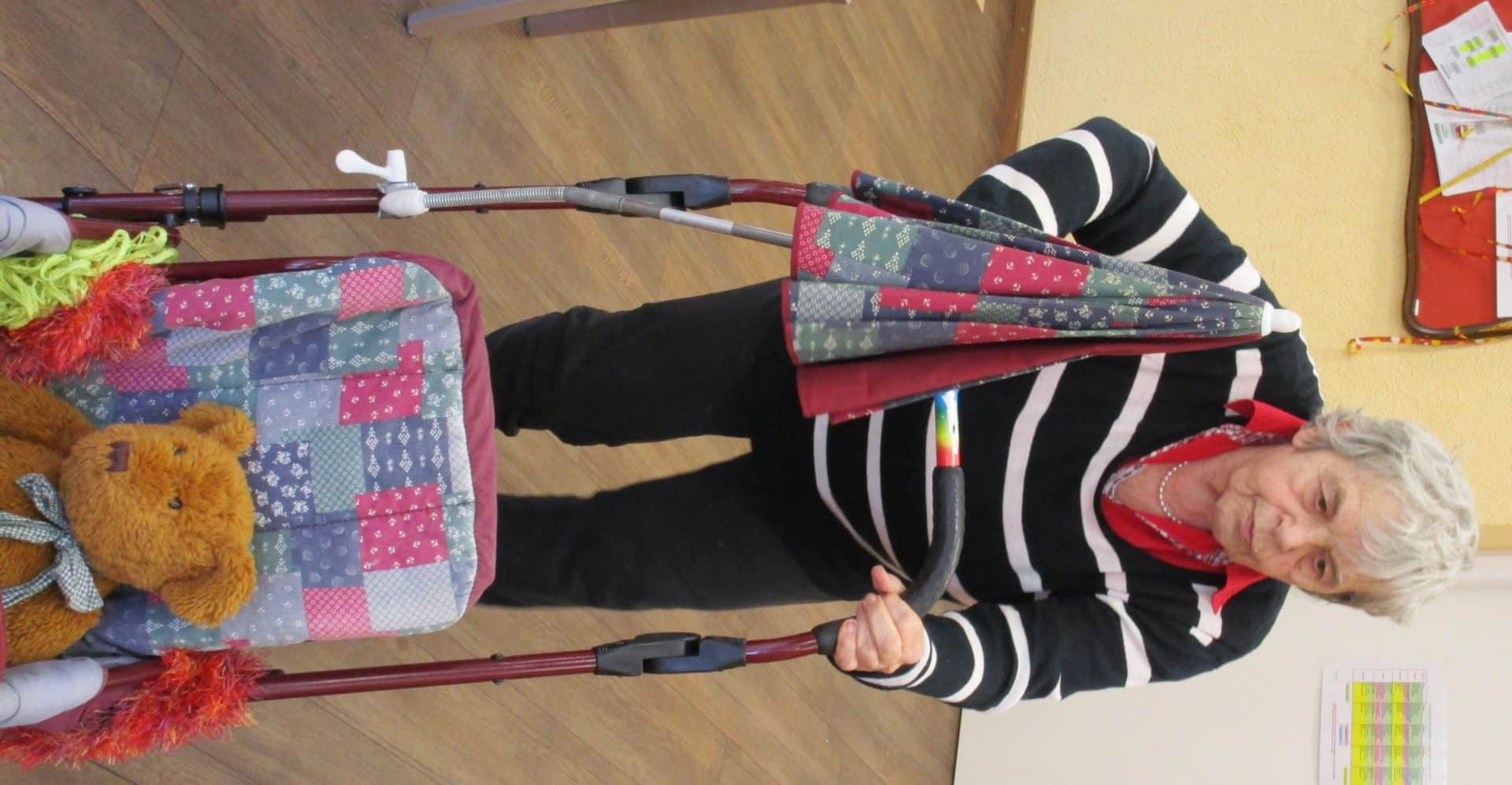 Auch unser in Pflege genommener Teddybär bekommt genug zu sehen, denn er wird liebevoll durch die Räumlichkeiten der Tagespflege geschoben.