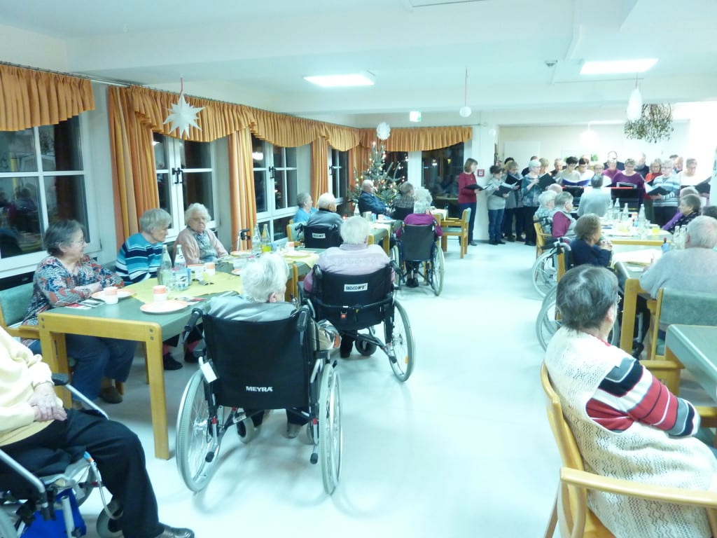 Weihnachten stand vor der Tür und es wurden deshalb ausschließlich schöne Weihnachtslieder gesungen. Der Chorleiter begleitete den Chor am hauseigenen Klavier. Da sehr bekannte Weihnachtslieder angestimmt wurden, sangen unsere BewohnerInnen begeistert mit und stimmten sich und auch unser Team auf Weihnachten ein.