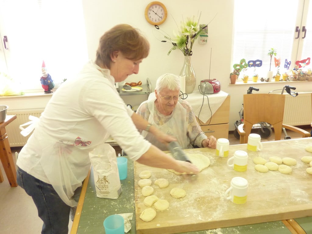 Die närrische Zeit des Jahres ist angebrochen. Grund genug, eine lieb gewonnene Tradition in unserem Haus Königsland aufleben zu lassen: Jedes Jahr zur Faschingszeit backen unsere Seniorinnen und Senioren, zusammen mit der sozialen Betreuung, die typischen „Fasenachtskichelscher“. Die leckeren Berliner sind bei unseren BewohnerInnen heiß begehrt und dürfen in der fünften Jahreszeit nicht fehlen. Den Teig stellten die Bewohner in unserer geräumigen Küche selbst her. Rechtzeitig zum Nachmittagskaffee waren die Leckereien fertig – und es duftete herrlich in unserem Haus!