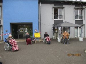 Unsere November-Geburtstagskinder bekamen ein Ständchen von den Kindern der Sonnenkindertagestätte in Albisheim dargebracht. Auch wenn das Treffen vor dem Haus stattfinden musste, waren alle mit viel Begeisterung dabei und die Freude war groß über den schönen Gesang der Kinder.