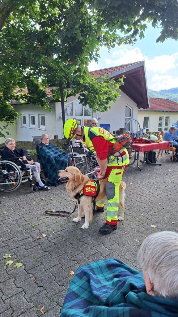 Am 10. September besuchten die Rettungshundestaffel der DLRG Altenglan e.V. sowie die Rettungshunde des Katastrophenschutzes im Landkreis Kaiserslautern das Seniorenheim Königsland in Wolfstein.
