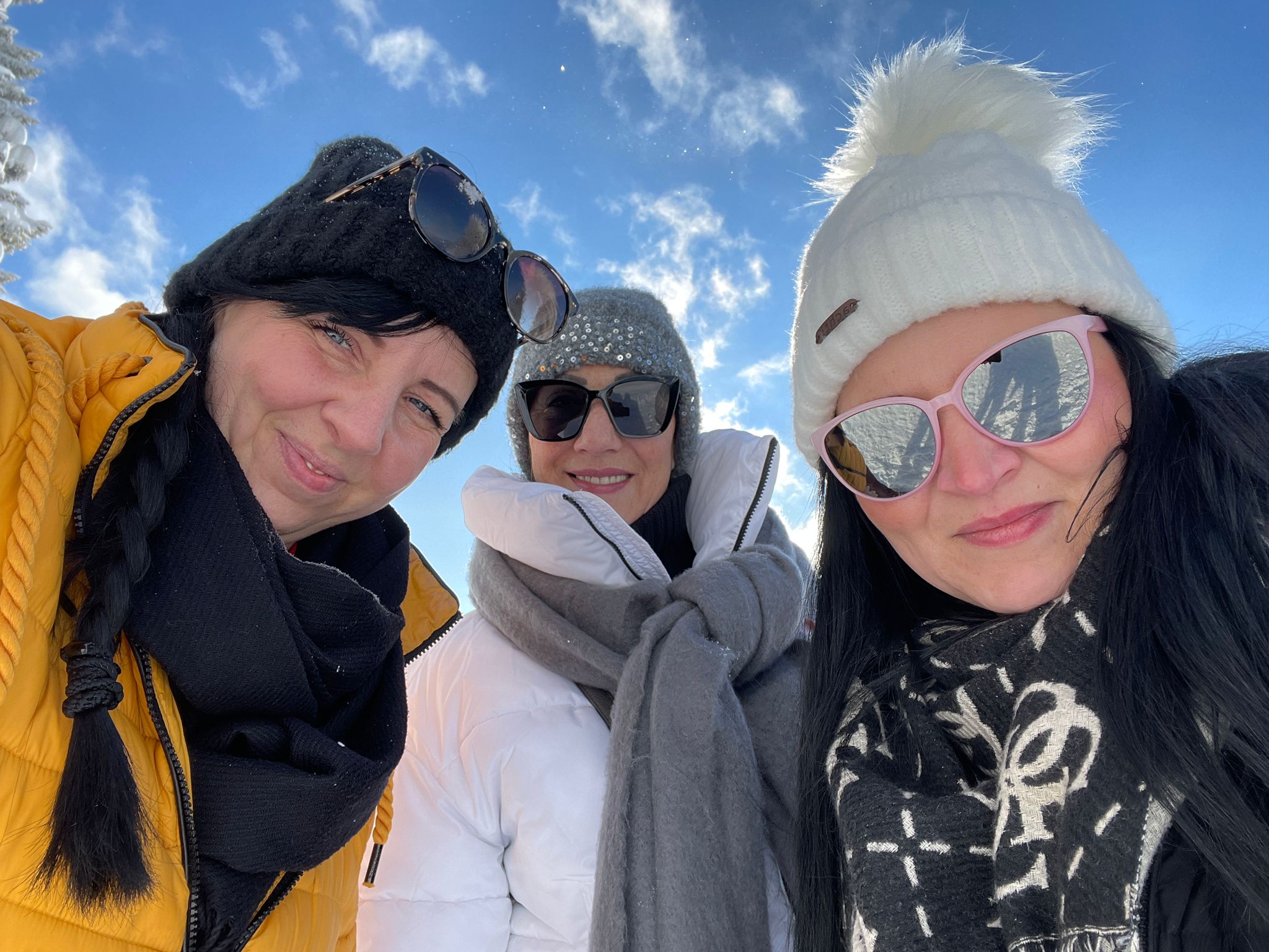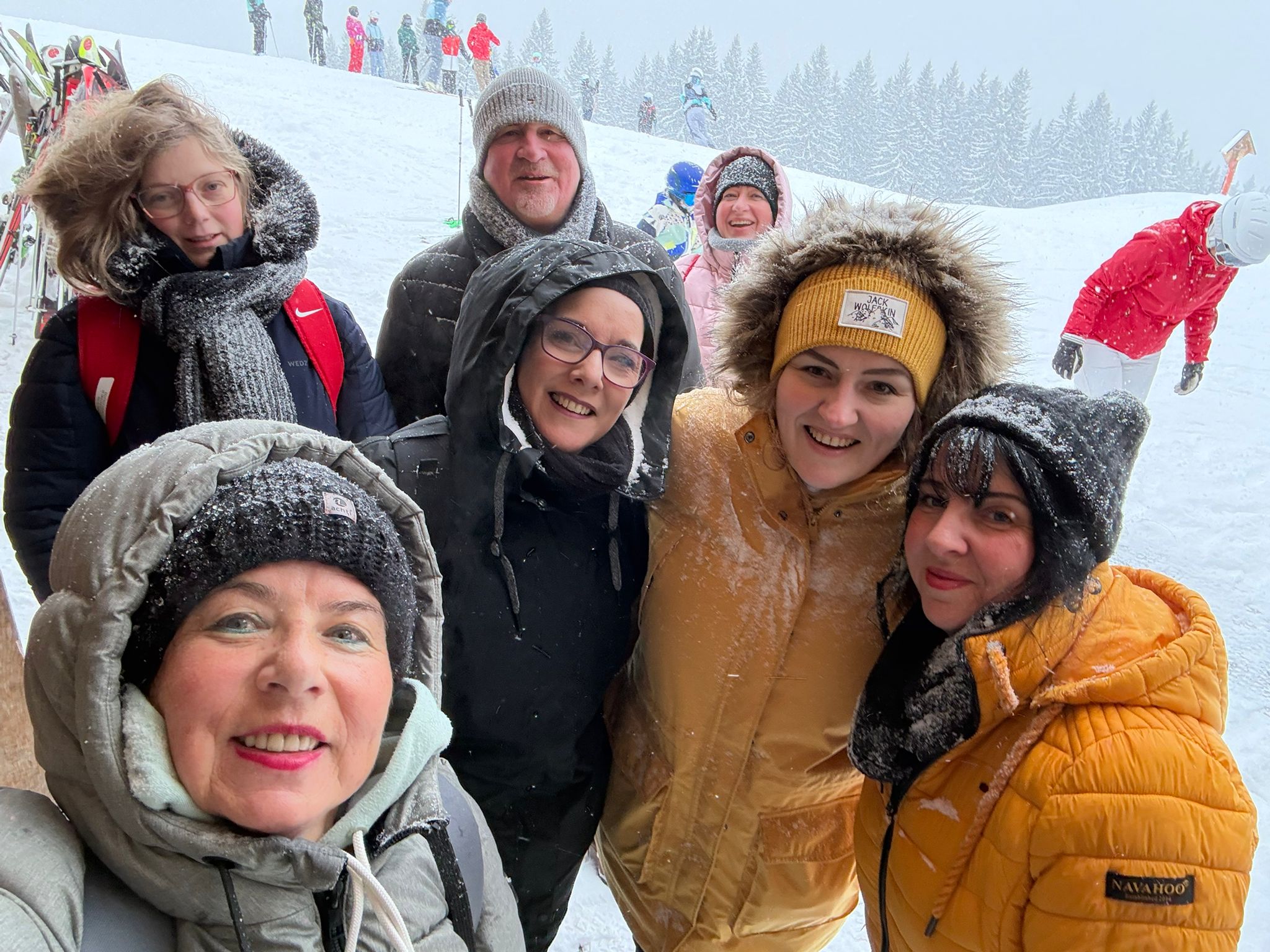 Am nächsten Tag hieß es Wandern und Skifahren bei starkem Schneefall und ordentlich Wind. So manch Eine fand sich nach einem falschen Schritt in einem Loch wieder.