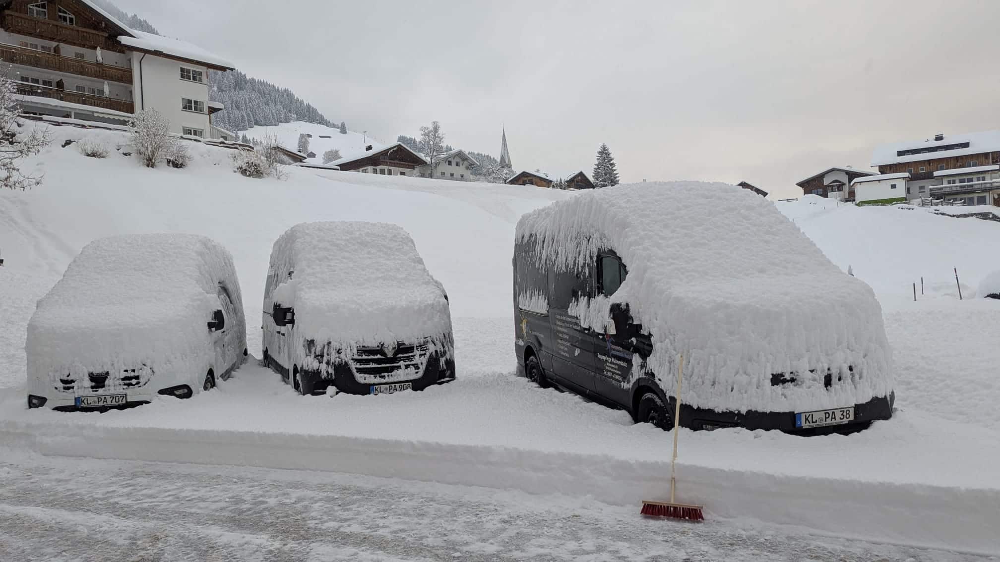 Der Sonntag empfing uns mit einer Menge Schnee und es mussten als erstes die Fahrzeuge ausgebuddelt werden.