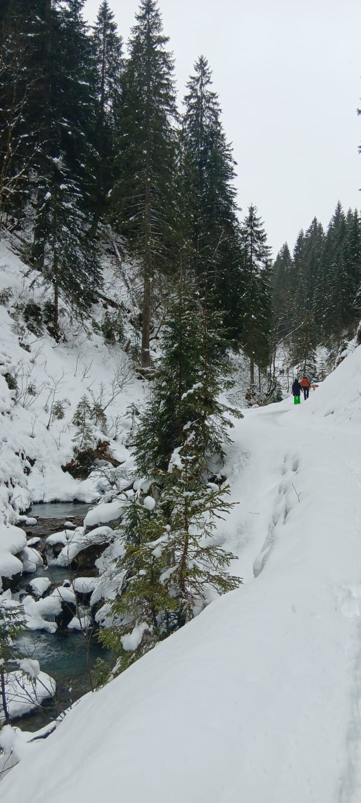 Für den Abend war eine Fackelwanderung in der Breitachklamm geplant. Diese wurde durch den Schneefall leider verhindert, denn wir kamen nicht mehr aus dem Tal raus.