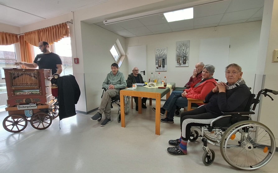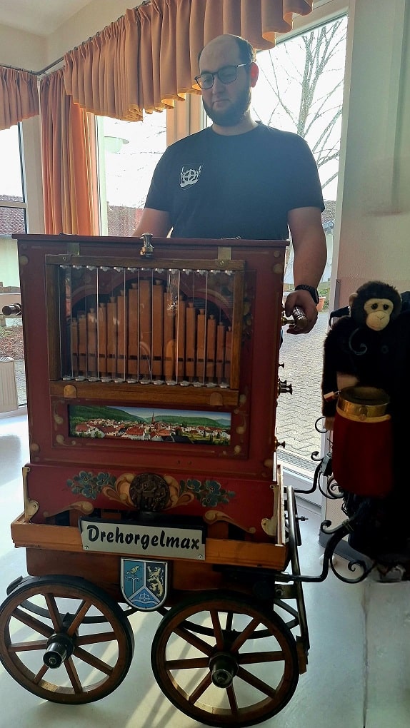 Drehorgelspieler Max begeistert im Seniorenheim Königsland