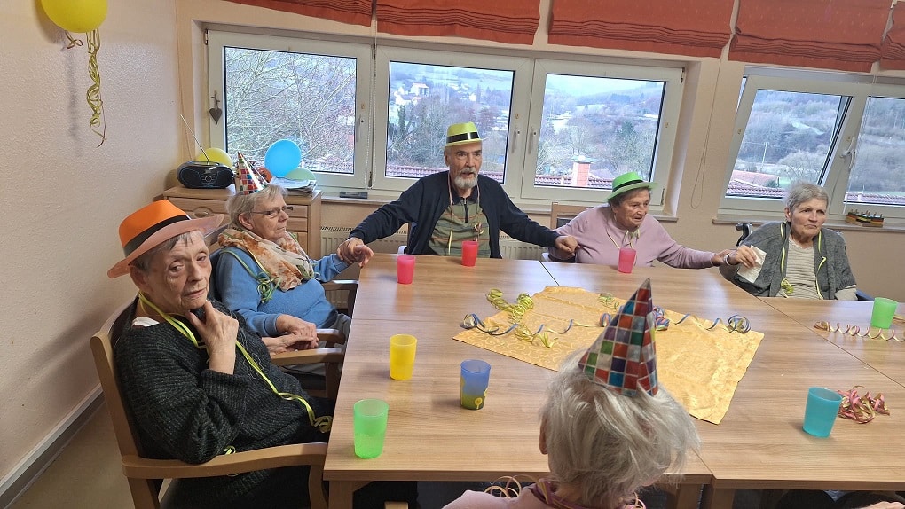 Unsere Tagesgäste erschienen zahlreich und fantasievoll verkleidet – mit bunten Hüten, lustigen Brillen, Perücken, Tüchern und allerlei närrischen Accessoires. Die Freude war allen ins Gesicht geschrieben.