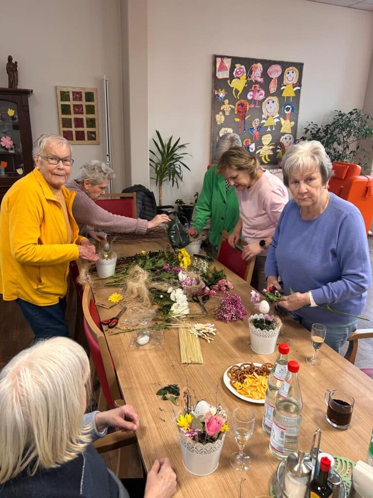 Am vergangenen Samstag wurde in der Tagespflege Hahnenbalz die Osterzeit eingeläutet. Gemeinsam mit viel Kreativität und guter Laune fertigten unsere Gäste liebevolle Ostergestecke mit frischen Blumen an.