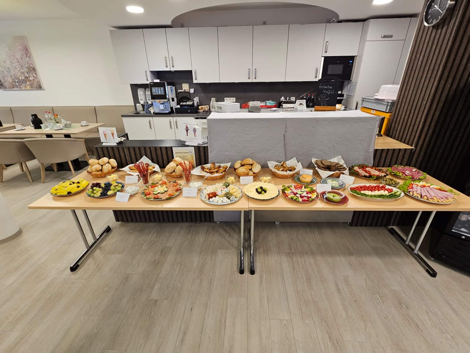 Auf Wunsch kümmern wir uns auch um die Bewirtung: von Kaffee und Kuchen bis hin zu einem kleinen Buffet.