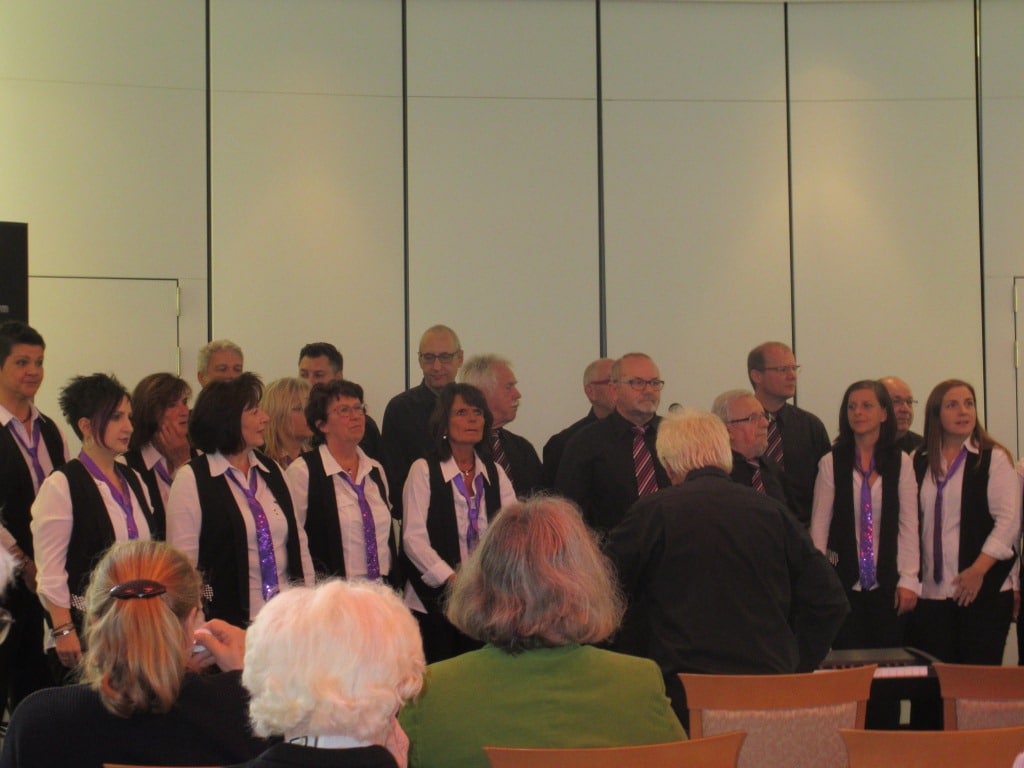 Das Vocalensemble Cantocci singt Volkslieder und lädt zum Mitsingen ein. Gleich zu Anfang erklärte Gabriele Graeber, die auch sonst weitestgehend sehr eloquent durchs Programm führte,