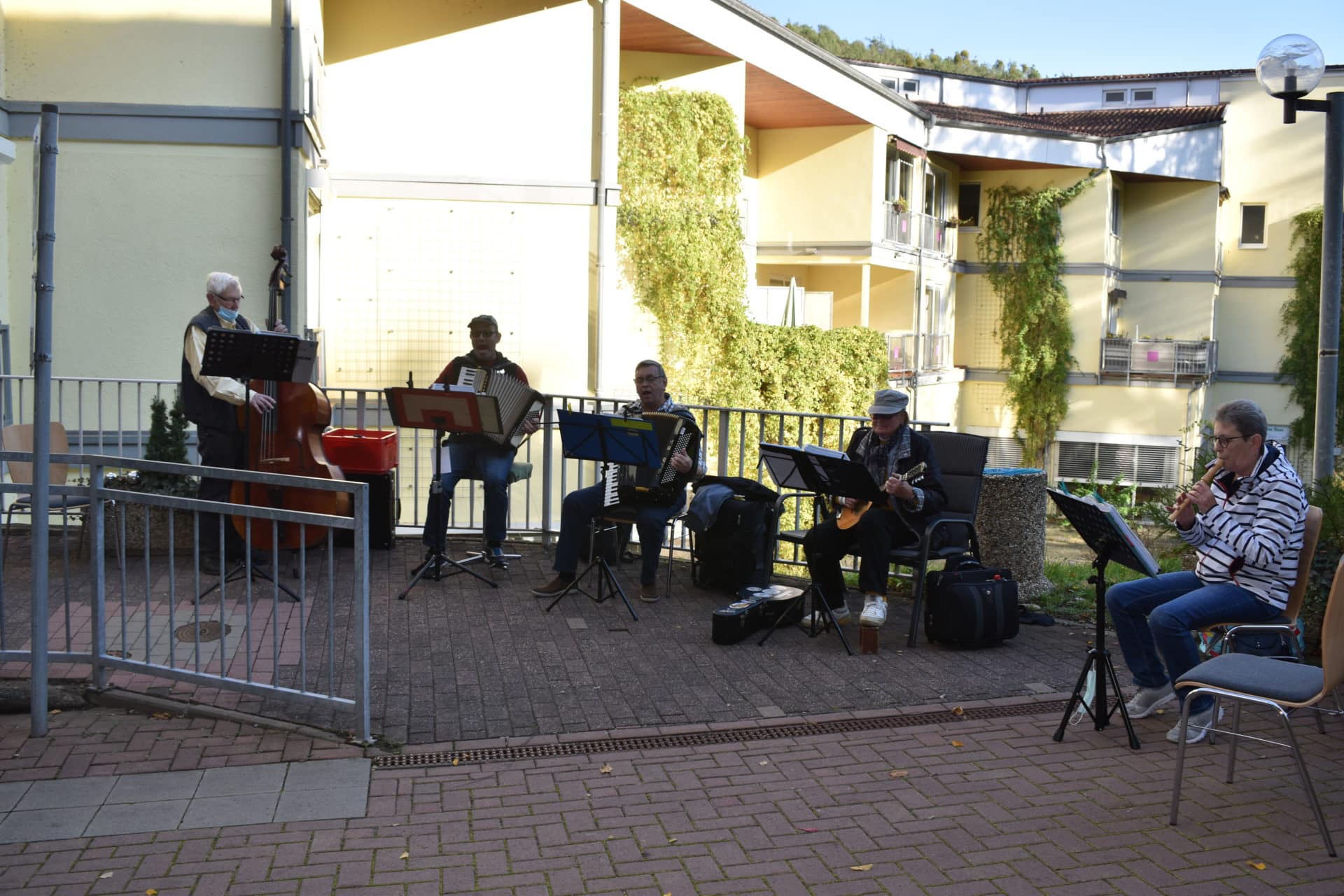 Am Samstag, den 31.10.2020, fand bei sonnigem Spätherbstwetter und milden Temperaturen wieder ein super schönes Hofkonzert mit den Hobbymusikern „Die mutige Spätlese“ im Außenbereich des Haus an den Schwarzweihern,