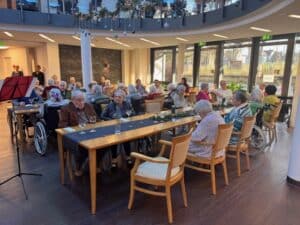 In unserem Restaurant und Café im Foyer sind Gäste und die Besucher:innen unserer Bewohner:innen herzlich willkommen. Gerne richten wir hier auch Feste aus. Wir öffnen unser Haus auch regelmäßig, um zu zahlreichen kulturellen Veranstaltungen einzuladen – beispielsweise für „Kultur im Quartier“ und die wöchentlichen Singproben von „Foreveryoung“