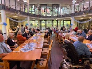 In unserem Restaurant und Café im Foyer sind Gäste und die Besucher:innen unserer Bewohner:innen herzlich willkommen. Gerne richten wir hier auch Feste aus. Wir öffnen unser Haus auch regelmäßig, um zu zahlreichen kulturellen Veranstaltungen einzuladen – beispielsweise für „Kultur im Quartier“ und die wöchentlichen Singproben von „Foreveryoung“