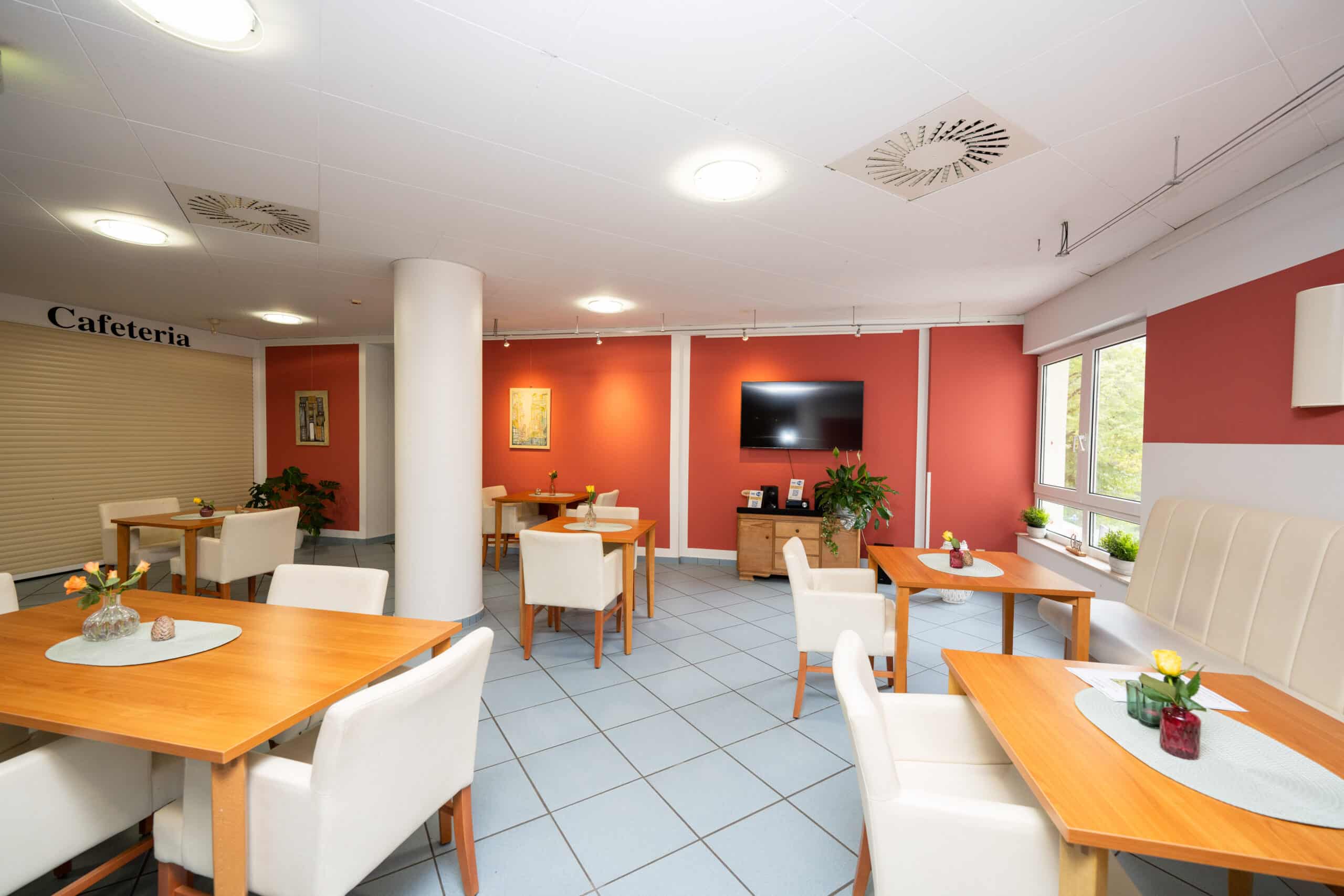 Im großzügig angelegten Empfangsbereich befinden sich unser hauseigenes Kiosk und unsere Caféteria. Beide Örtlichkeiten sind sowohl für unsere Heimbewohner:innen als auch für Angehörige und Besucher:innen zugänglich.